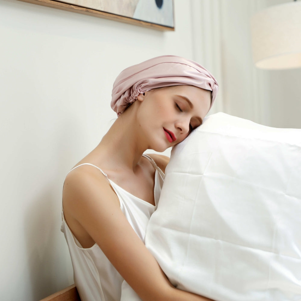 SLEEPING WITH PURE SILK SLEEP CAPS